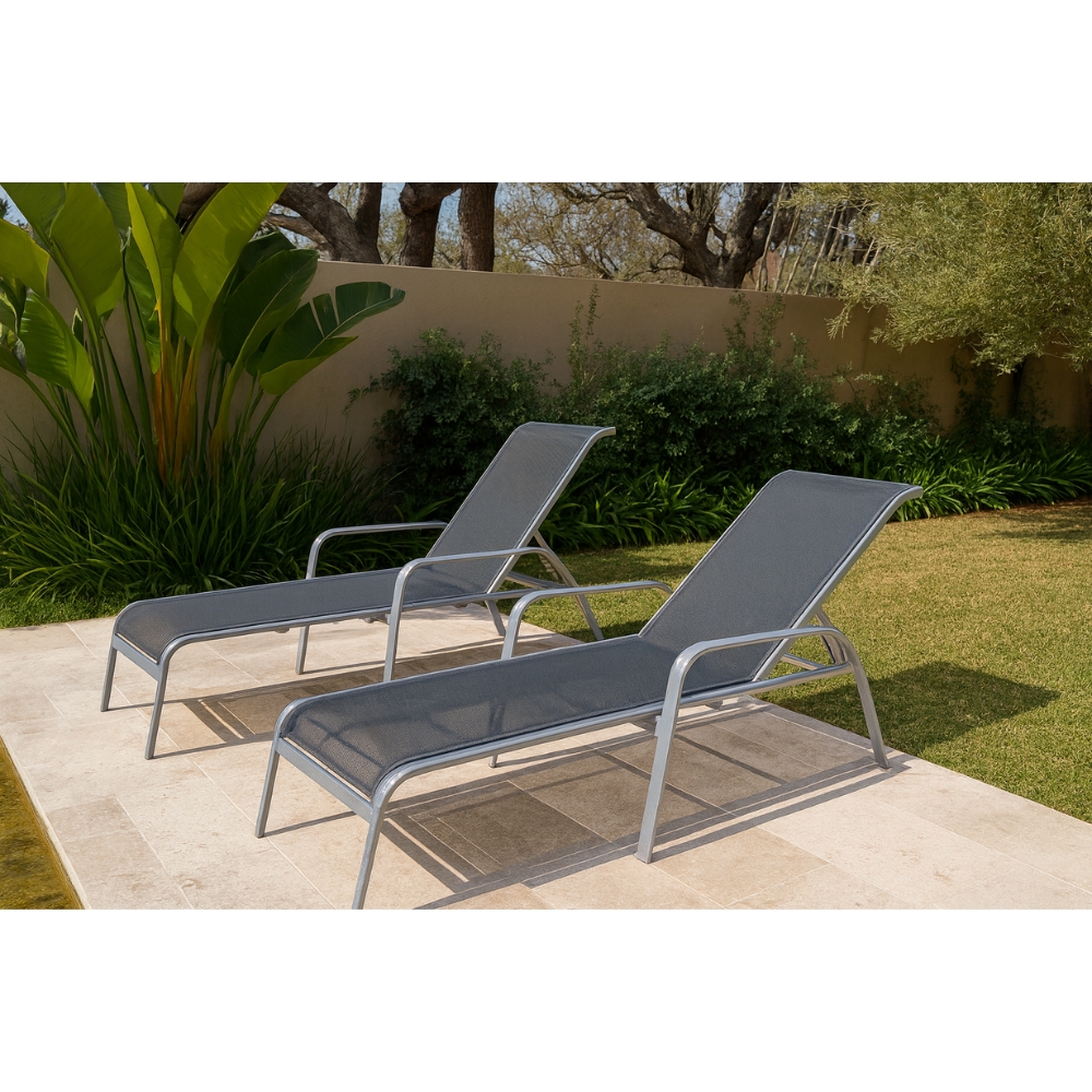 Relajate al aire libre con estilo y comodidad con el Camastro Río. Su estructura de acero con pintura epoxi garantiza una gran resistencia a la intemperie y una durabilidad superior. El asiento de textilene no absorbe humedad, lo que lo hace ideal para uso en piscinas, terrazas y jardines.